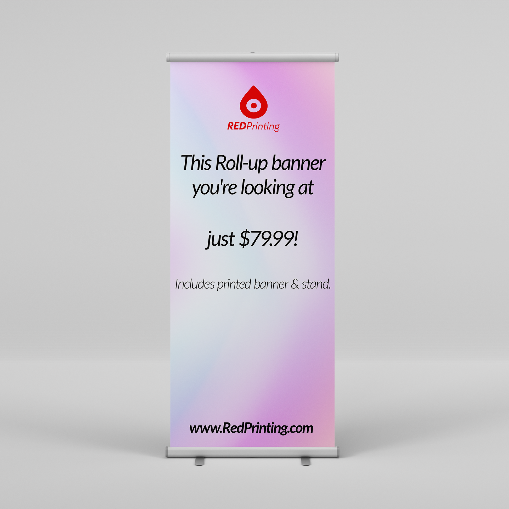 High-quality materials and print — no markup. Get pro-level banners for just $79.99, including the stand.