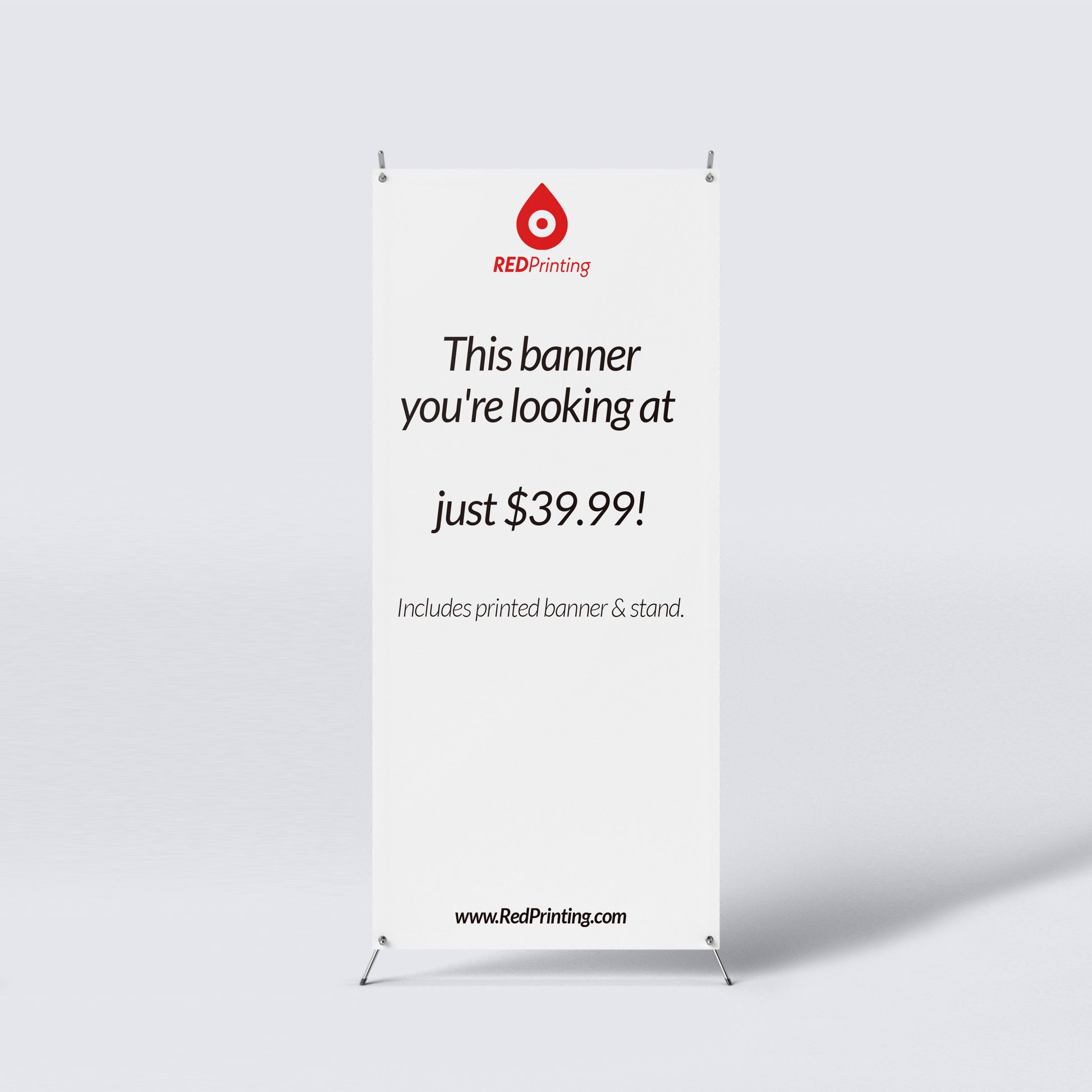 Includes the adjustable X-stand, high-resolution printed banner, and a convenient carry bag — all with free nationwide shipping.